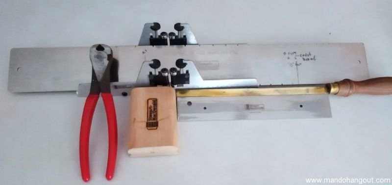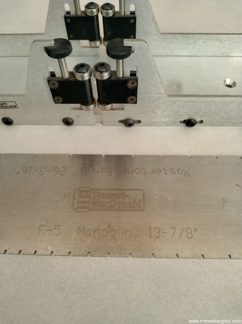 The fret scale template is a 26-3/16 Banjo and a 13-7/8 Mandolin. The sanding block is a 4 inch with 12 degree radius. Fret saw cuts a .023 wide slot.